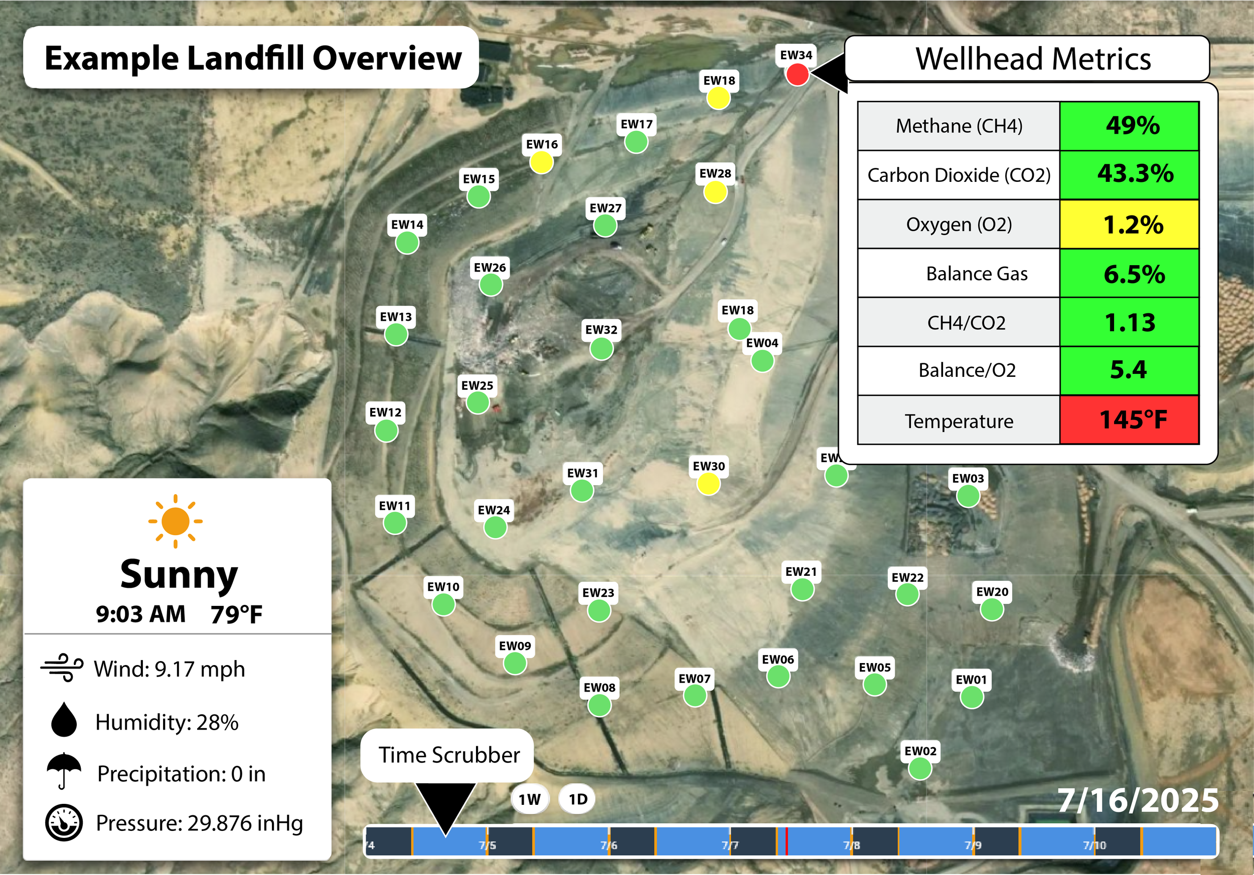 Landfill wellheads are influenced by a variety of factors, not only the settings of neighboring wellheads but also atmospheric influences such as barometric pressure, temperature, and moisture. The settings in these wellheads continuously fluctuate, and imbalanced vacuum pressure can have serious operational and safety consequences.