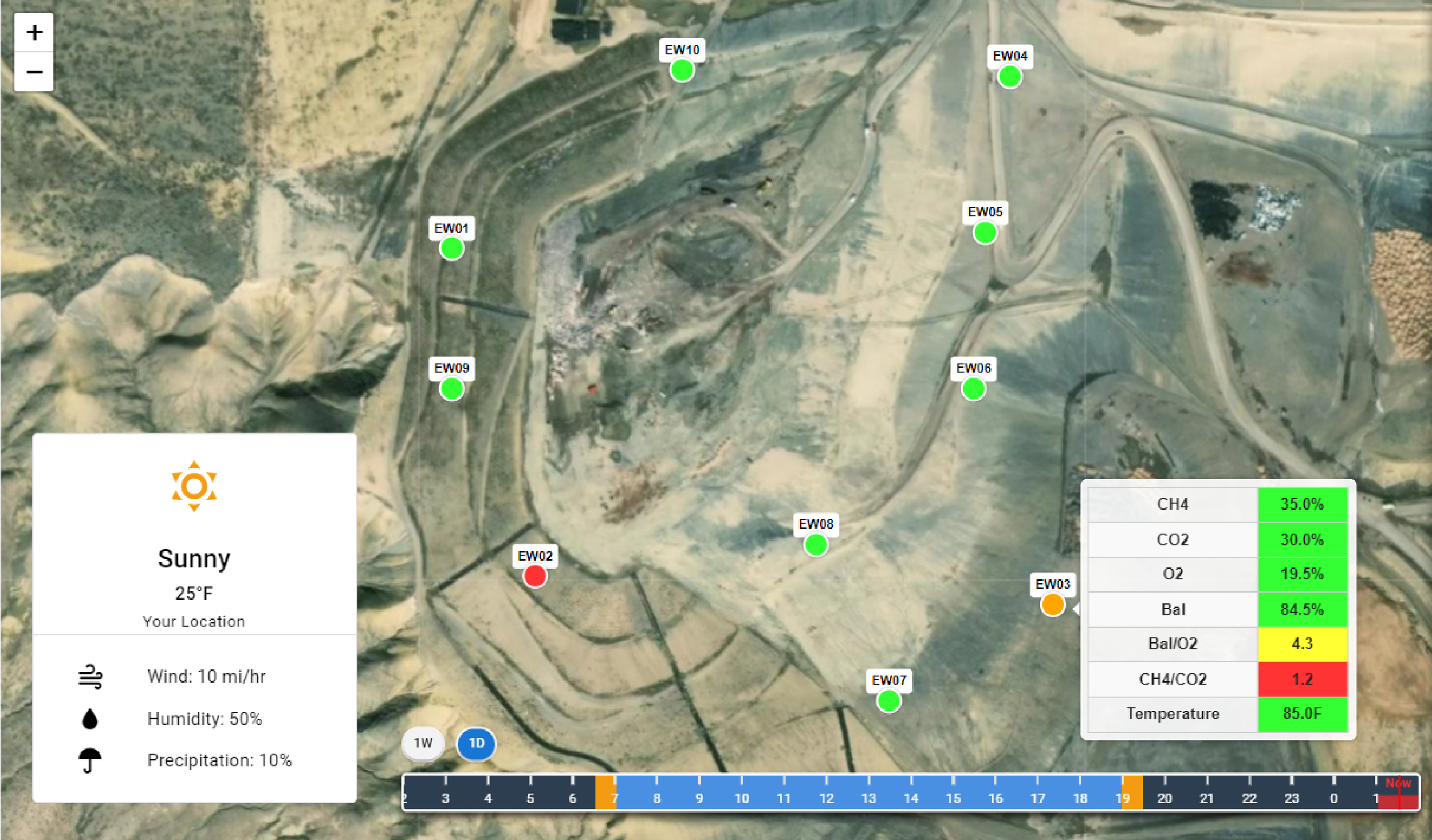 The Meerkat monitoring system is specifically designed for remote site applications, such as landfill gas monitoring. It continuously tracks critical site metrics and allows for remote adjustments to wellhead pressure. Compact and solar-powered, the devices are easy to install and require minimal maintenance. Data is transmitted wirelessly via a reliable mesh network to a central hub, offering real-time access and configurable alerts for deviations. The system also stores historical data, enabling trend analysis and actionable insights to improve site safety and efficiency.